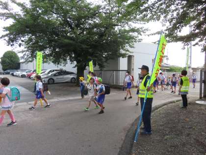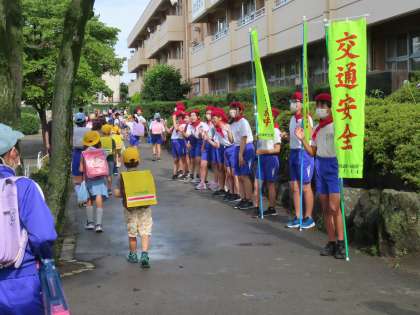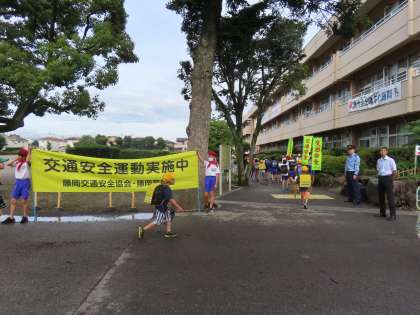 7月17日(水)交通少年団あいさつ運動(夏の県民交通安全運動) 公開日 2024/07/17 更新日 2024/07/17 できごと(2024) 今朝、本校の6年生児童を中心とした交通少年団によるあいさつ運動を実施しました。藤岡市警察署、藤岡交通安全協会、藤岡市交通対策協議会の皆様と一緒に、「夏の県民交通安全運動」の呼びかけも行いました。 地域の一員である第一っ子が交通安全への意識を高め、より安全な地域づくりのために貢献しようという気持が芽生えています。