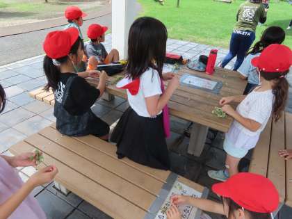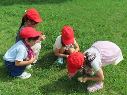 7月17日(水)1年生 生活科「こうえんへ いこう」4 公開日 2024/07/17 更新日 2024/07/17 できごと(2024) 虫や花が大好きです。生き物が大好きな優しい子供たちです。しろつめくさや四つ葉のクローバーを集めて楽しんでいました。そして芝生のなかから虫を発見するのもとても上手です。