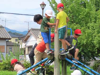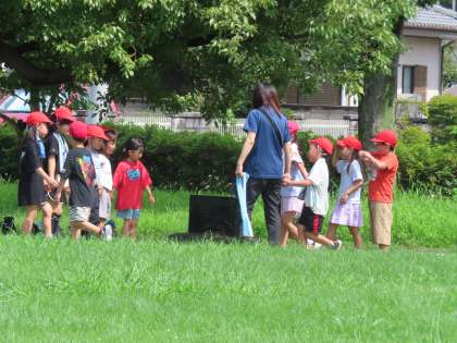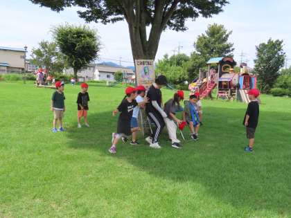 7月17日(水)1年生 生活科「こうえんへ いこう」5 公開日 2024/07/17 更新日 2024/07/17 できごと(2024) 先生も一緒に楽しく遊びました。「はないちもんめ♪」「みどり わかくさ〜♪」と元気よく校歌を歌いながらのいす取りゲーム。体を動かすのも好きですが、みんなと声をあわせて歌うのも大好きな1年生です。