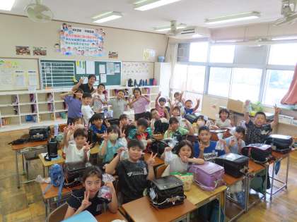 7月19日(金)1学期最後の学級 2 公開日 2024/07/20 更新日 2024/07/20 できごと(2024) すべての学級を紹介することができませんが、どの教室も和やかで楽しそうな笑顔いっぱいでした。 そして、カナダのモントリオールからの体験入学児童(4年生、6年生)としばらくのお別れです。友達や先生と別れを惜しんでいました。でも・・・いつまでも大切な第一っ子の仲間です!また会いましょう!