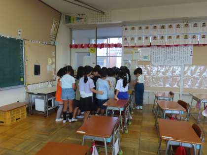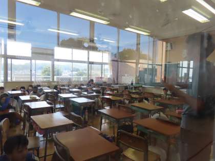 2時間目、不審者侵入を想定した避難訓練を実施しました。全校一斉の時間で行いましたが、各学級、各学年でそれぞれに応じた訓練を行いました。各教室で、担任を中心にして、どんな行動をとったらよいのか考えました。様々な状況を想定してみんなで真剣に考え動いてみました。