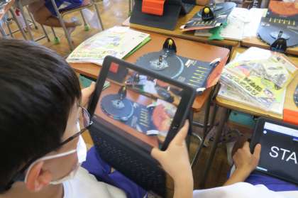「月の形と太陽」の学習です。問いは、月の形が日によって変わって見えるのはなぜか?です。月と太陽の位置関係について考えることができるよう、スペシャル教材を使って学習を進めていました。校長先生がこのスペシャル教材、そしてそれを使って学習を充実させている6年生の目の輝きに大大大感動していました。