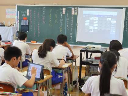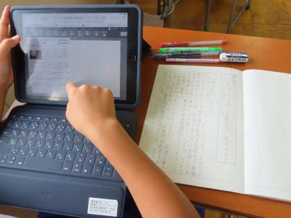 「インターネットでニュースを読もう」を学習しています。「ここでは」現在私達の生活には欠かせないインターネットでのニュースサイトの読み方について学習します。事実を正しく読み取るなど適切な活用の仕方を考えることができるようになります。今日は、自分の関心の高いニュースを選び、その紹介記事を作成していました。自分の課題に集中して取り組んでいるのはもちろんですが、タブレットをうまく使い、友達の学習も参考にしていました。