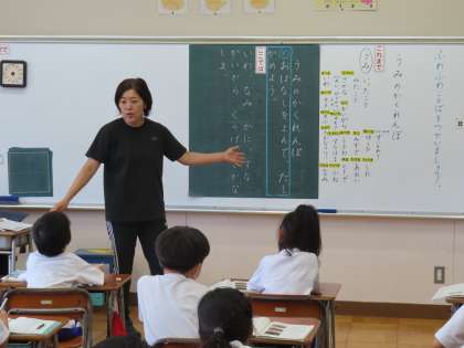 9月19日(木)1年生 国語 公開日 2024/09/19 更新日 2024/09/19 できごと(2024) 教室に入ると児童がとても楽しそうに和やかな雰囲気で学習していました。聞こえてくる言葉は「うみ」から思い浮かぶ言葉だったのでしょうか。頭の中で海をイメージしながらたくさんの言葉が出てきます。友達の発言を聞き、さらにワクワクしている様子でした。先日カタカナを学習していたので、「カタカナでかけるものも みつけたよ!」学んだことをどんどん使いたいという意欲にも満ちあふれる1年生です。