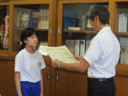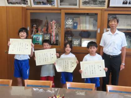 9月19日(木)表彰 2 公開日 2024/09/19 更新日 2024/09/19 できごと(2024) 校長先生からは、どの児童の作品も、人の心に届く素晴らしいものです!と大きな拍手が贈られました。こうして誰かの心に響く作品をつくりあげることができるなんて、素晴らしいですね。 (写真上)「藤岡市教育委員会教育長賞」2年生児童 (写真中)「藤岡発明協会会長賞」5年生児童 (写真下)全員で記念撮影