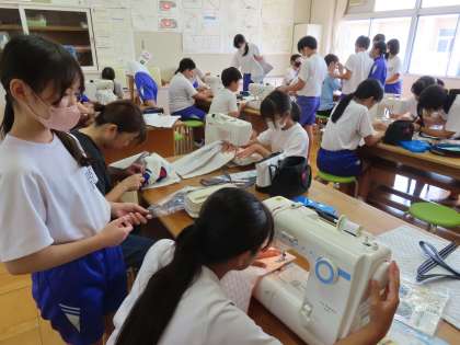 9月20日(金)東クローバー協力(6年生 家庭科) 公開日 2024/09/20 更新日 2024/09/20 できごと(2024) 「ソーイングで生活を豊かに」の学習です。「ここでは」使う目的に応じた袋の工夫を学習し、自分の生活に生かす袋を作成します。いよいよミシンを使用する学習に入りました。東クローバーの方々に児童の学習をサポートしていただいています。ありがとうございます。