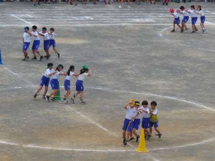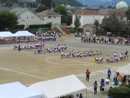 9月28日(土)運動会 5年生「ムカデ競走」1 公開日 2024/09/28 更新日 2024/09/28 できごと(2024) 「転んでしまうのもご愛敬。繊細に、そして大胆に、息を合わせ、歩幅を合わせて走ります。」という場内アナウンスに、大きな声援が上がります。