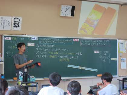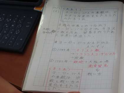 10月1日(火)6年生 社会科 公開日 2024/10/01 更新日 2024/10/01 できごと(2024) 「ここでは」ヨーロッパ人の来航がもたらしたことを知ることで、戦国の世における日本とヨーロッパ関わりについて学んでいます。ちょうど教室では南蛮貿易のことが話題に上がり、実はみんな大好きなカステラは・・・関係があることを知り、さらに歴史の学習を身近に感じていたようでした。