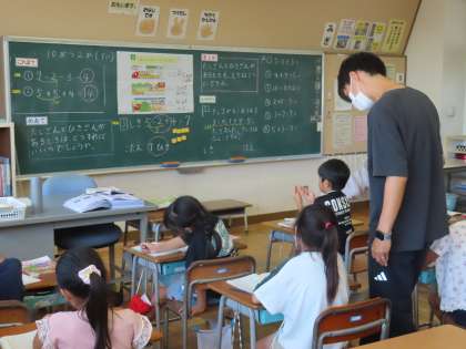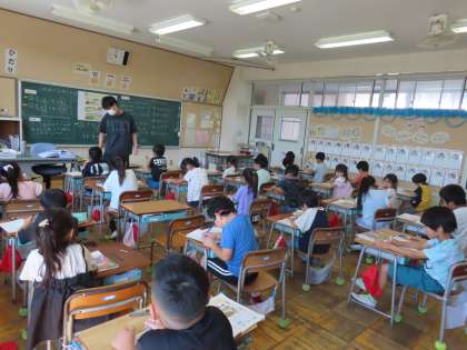 「3つのかずのけいさん」2組では、たしざんとひきざんが含まれていても、一つの式になることを学習しました。ちょうど教室では、「ふりかえり」で問題に挑戦中。みんなとてもよくできていました。慌てずに丁寧に、確実に計算していました。こうしてどんどん計算の力をつけています。