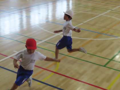10月3日(木)1年生 体育 公開日 2024/10/03 更新日 2024/10/03 できごと(2024) 2時間目、体育館で「ふえおに」をしていました。とても元気よく、思いっきり体育館内を走り回っていました。途中で転んでしまったお友達にそっと優しく手を差し伸べる光景が見られました。こうして、お互いを思いやり、助け合える学級の中で、第一っ子は本気で学んでいます。