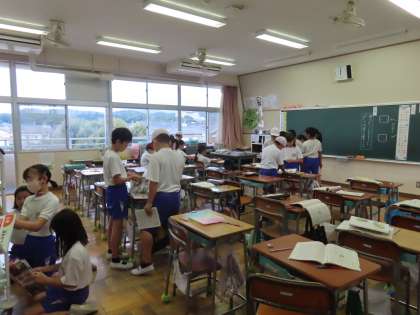 10月3日(木)4年生 国語 公開日 2024/10/03 更新日 2024/10/03 できごと(2024) 「もしものときにそなえよう」の学習では、調べたことを整理し、文章の組立を考えて、自分の考えがはっきりと伝わるように文章を書いています。先生に見てもらったり、体育帽子をかぶっている友達からアドバイスをもらったりしていました。インターネットだけではなく、図書資料を活用している児童が多くいました。