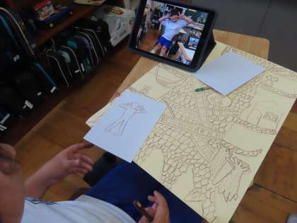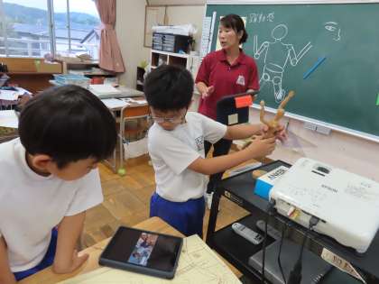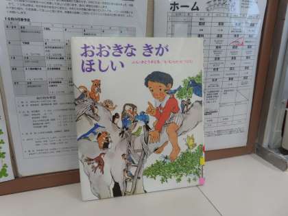 絵本「おおきな きが ほしい」の読み聞かせを聞いて、「ここでは」自分の木を想像して表現しています。絵本の一場面をつくっています。「わたしの き」と何したい?画用紙いっぱいに表現するときに、躍動感あふれる自分の動きをどうやって出そうか?考えて表現していました。大きな木と一緒の自分を想像して描いています。4年生の作品の仕上がりが楽しみです!