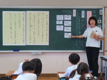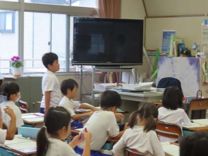 「すごいね!いい意見だね!」「よく気が付きましたね!」先生が嬉しそうに話していました。「どうぶつ園のじゅうい」のまとめです。今日は、本文を読んで知った獣医の仕事と自分の身の回りのことを比べて考えたことをまとめてみます。ちょうど教室では、獣医さんが動物園を出る前は必ずお風呂に入るのはなぜか、読み取ったことをよく覚えていてみんなで確認していました。本当にしっかり自分の言葉で上手に発言できました。(写真下)