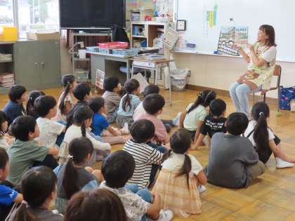 10月7日(月)読み聞かせ 1年生(東クローバー) 公開日 2024/10/07 更新日 2024/10/07 できごと(2024) 1年生各学級の様子です。どの教室からも、ボランティアさんと子供たちとの対話がいっぱいで、すっかりと子供たちがお話の世界に引き込まれているのがわかりました。週の始まりに、素敵な時間をありがとうございます。
