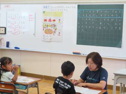 10月7日(月)1年生 算数 公開日 2024/10/07 更新日 2024/10/07 できごと(2024) 「3つのかずのけいさん」の学習です。今日は自分で問題文を作っていました。みんな一生懸命頑張ってノートに文章を考えて書いていました。早く先生に読んでもらいたくて、一生懸命手を挙げていました。「できた!」「みてほしい!」の姿がこうしてたくさん見られるのは素晴らしいですね。嬉しいです。