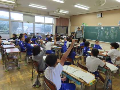10月9日(水)3年生 国語 公開日 2024/10/09 更新日 2024/10/09 できごと(2024) 「ちいちゃんのかげおくり」どんどん学習が深まっていくにつれて、3年生の気持ちが一時間一時間の学習に込められていくのを感じています。今日は、2つの場面の「かげおくり」の様子を比べていました。児童から次々と意見が出され、友達の意見をしっかり「聴く」ことでどんどん場面を想像し、登場人物の気持ちを想像しています。