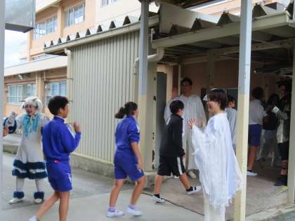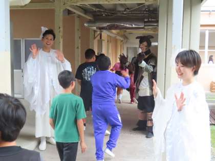 10月10日(木)演劇教室 2 公開日 2024/10/10 更新日 2024/10/10 できごと(2024) 児童が教室まで戻るとき、通路に立ってくださり、笑顔であいさつをしてくださいました。夢団の方々からはたくさんの元気をいただいたので、第一っ子もとびっきりの笑顔で元気よくあいさつを交わしていました。