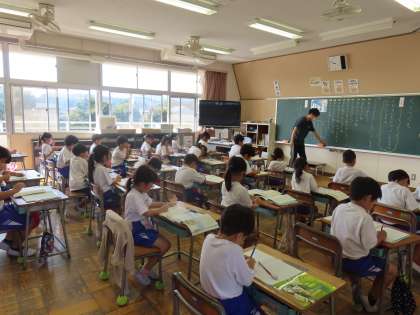 10月17日(木)1年生 国語2 公開日 2024/10/17 更新日 2024/10/17 できごと(2024) 本当に1年生は「くじらぐも」が大好きです。2組では、「くじらぐも」にお手紙を書き始めているところでした。ちょうどこのお話に出てくるのは「一ねん二くみの子どもたち」。自分たちも一緒に「くじらぐも」にのっている気持ちで学習してきているので、とってもすてきなお手紙を書くことでしょうね。
