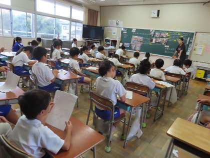 昨日の市立図書館での校外学習をふりかえっていました。図書館の「ひみつ」「くふう」をたくさん見付けてきました。みんなでこうして昨日のことを振り返ってみると、図書館の光景が浮かんできて、またどんどん思い出して笑顔になっていました。「あたらしい本」「みんなによんでもらいたい本」の本棚が特別なこともよく覚えていました。このあと、「ここでは」の学びを自分オリジナルの新聞にまとめます。楽しみです。