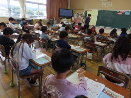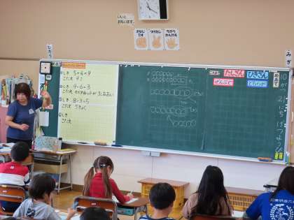 教科書「さんすう たまてばこ」のページ「かんがえてみよう どんな けいさん するのかな」を考えていました。「これまで」学習してきた「たしざん」「ひきざん」のキーワードをよく思い出していました。文章を読んで、「3こ しまって」は「ひきざん」よくできていました。