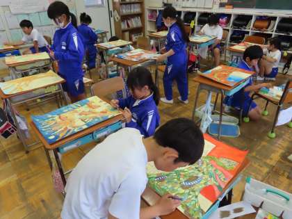 11月5日(火)4年生 図画工作 公開日 2024/11/05 更新日 2024/11/05 できごと(2024) 「絵をかく会」の仕上げに入ってきています。細かいところまでとても丁寧にかいていました。テーマは「おおきなきが ほしい」です。絵本を読んで、「もしもおおきな気があったら・・・」想像してかいています。夢いっぱいの想像を膨らませて、楽しくて大好きなことに囲まれた夢の世界を想像して、夢中になってかいていました。
