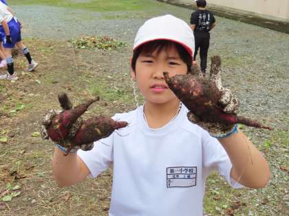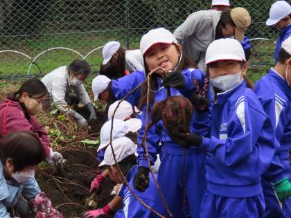11月6日(水)2年生 さつまいも収穫の喜びシーン 2 公開日 2024/11/06 更新日 2024/11/06 できごと(2024) かぼちゃみたい!ふたごちゃんのさつまいも!あかちゃんみたいでかわいいな! いろいろな大きさ、いろいろな形。掘ってみてまた楽しさが増します。