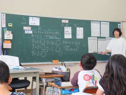 今日は7のだんの九九の作り方を考えていました。どうしたらいいか?自分の考えをノートにかいていました。先生からは、一つのやり方でなくいくつかの方法を試してみること、自分の言葉でお友達に説明できるようにすることの指示がありました。かけ算九九はただ暗記するだけでなく、ここまでの学習の過程が大切にされていることがポイントです。