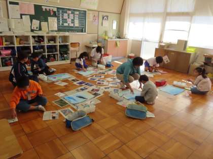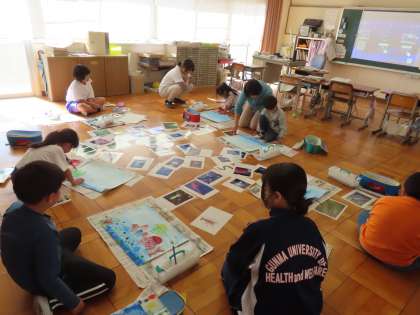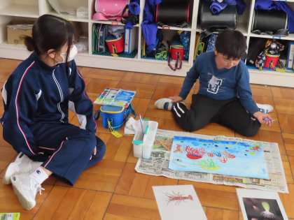 11月13日(水)わかくさ学級 公開日 2024/11/13 更新日 2024/11/13 できごと(2024) ただ今、第一っ子たちは「絵をかく会」の作品づくりに取り組んでいます。それぞれの学年のテーマにそって、自分の思い描くものを画用紙いっぱいに表現しています。わかくさ学級の児童たちは、この時間が大好きです。特に、生き物などの自分の好きなものをかいているときの表情はとてもニコニコしています。