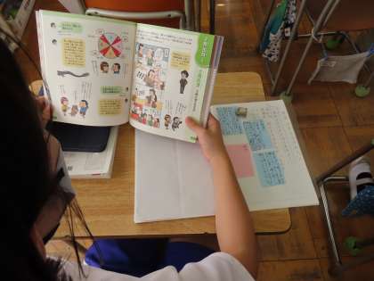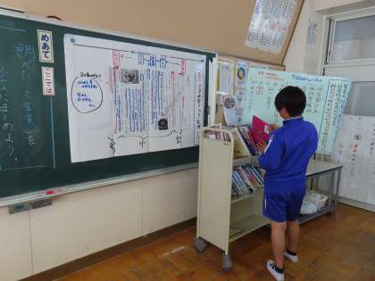 11月13日(水)6年生 国語 公開日 2024/11/13 更新日 2024/11/13 できごと(2024) 「ここでは」日本文化の魅力について伝える文章を作成します。前単元「鳥獣戯画を読む」など、これまでの学習で学んできている文章の構成や表現の工夫を生かしています。今日は、自分の選んだ題材について調べ、調べたことを付箋紙に書いて整理していました。この活動により、伝えたいことがさらに明確になってきたと思います。また、自分の発信のみならず、友達の文章からも学んでほしいと思います。