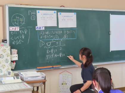 新しい単元の学習に入りました。「ここでは」比について学び、いろいろな場面で、比の考え方を利用して、便利だなと思えることが増えてくることと思います。今日は、ドレッシングの酢とサラダ油の量を例に考えていました。