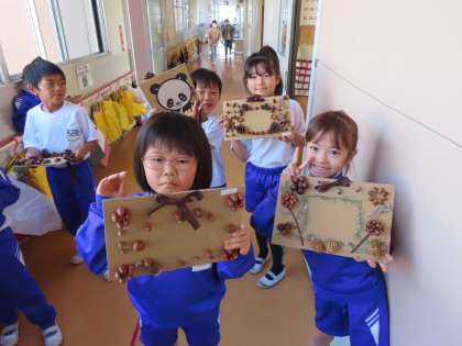 11月14日(木)1年生 生活科 公開日 2024/11/14 更新日 2024/11/14 できごと(2024) 「みつけた あき」を満喫しています。おもちゃを作ったり、フォトフレームを作ったり!今日はそのフォトフレームを廊下に飾っていました。みんな個性豊かですてきな作品ばかりです!学校で楽しんだ後は、各ご家庭で、思い出の写真を飾ってください。