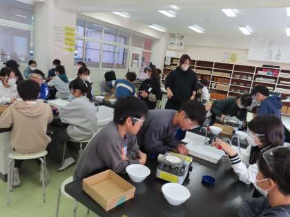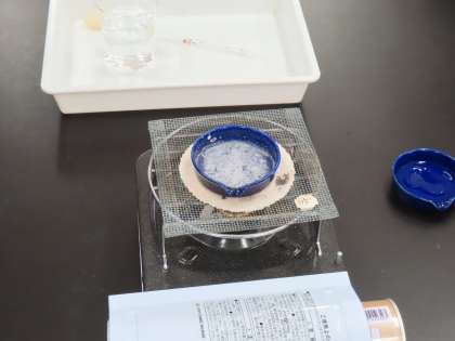 「物のとけ方」の学習です。「ここでは」水にとけた物を取り出すためにどうしたらよいか、実験を通して考えます。今日は目に見えない食塩やミョウバンを水溶液から取り出す実験をしていました。ガスコンロの使い方、金網の熱の伝わり方など、先生から「4年生のときにできるようになっていますね」大切なことなのであらためて確認しました。安全に実験することが大切です。つながっている学びは、このように安全に学習するために、理科の学習で一番大切なことです。