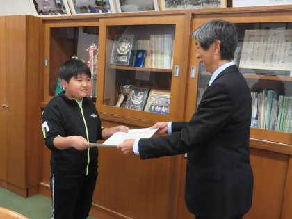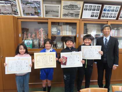 12月5日(木)表彰 公開日 2024/12/05 更新日 2024/12/05 できごと(2024) 20分休みに表彰を行いました。今日の「おめでとう!」は次の通りです。 ○「高山社とカイコをめぐる絵」 ・最優秀賞 5年生 ・藤岡市教育長賞 4年生 ・優良賞 5年生、3年生 おめでとうございます。最近、このような嬉しい第一っ子の活躍が続き、とても嬉しいです。