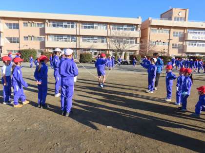 12月10日(火)体育集会 公開日 2024/12/10 更新日 2024/12/10 できごと(2024) 今回はなかよし集会の縦割り班で長縄を楽しみました。そしてみんなで今日のめあてを声に出して確認しました。「全員が、一回でも多く跳べるように、協力して長縄をしよう」です。低学年の子が「とべた!」と笑顔になれるように、上級生がやさしく導く姿はとても微笑ましかったです。そんな光景が第一っ子の自慢です。