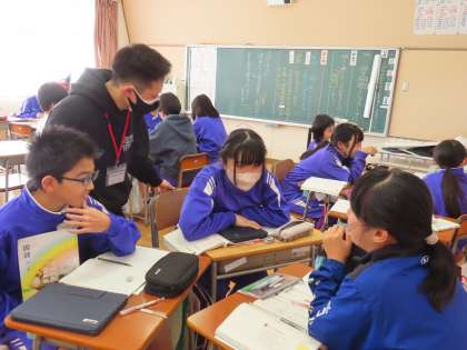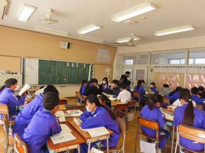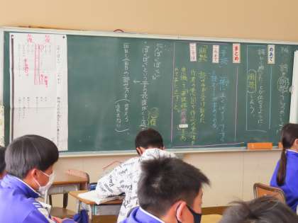 1月9日(木)6年生 国語 公開日 2025/01/09 更新日 2025/01/09 できごと(2024) 「詩を朗読してしょうかいしよう」の学習中です。「ここでは」様々な詩と出会い、自分が感じたことや詩に描かれていることが聞く人に伝わるように声で表現する(朗読)ことができるようになります。これまでずっと取り組んでいる音読とは違います。ちょうど教室では、「ぽくぽく」という詩を朗読しあっていました。色々な表現の仕方があることの面白さをこうして友達同士での学び合いを通して味わってほしいですね。