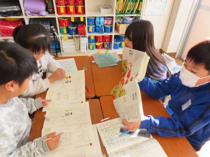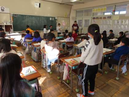1月14日(火)2年生 国語 公開日 2025/01/14 更新日 2025/01/14 できごと(2024) 「詩の楽しみ方を見つけよう」ちょうど教室では読み方の工夫を友達と考えているところでした。詩の情景を想像して、音や様子が思い浮かぶようにどう読んだらいいか?アイデアを出し合っていました。授業の最後に発表しました。聴いていた友達に自分たちが工夫して読んでいたことが伝わっていて嬉しそうでした。