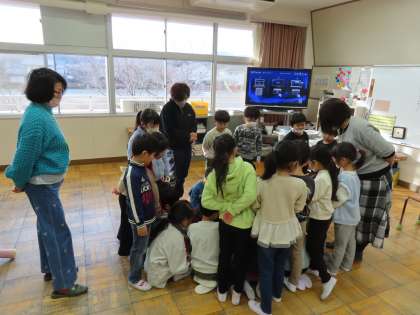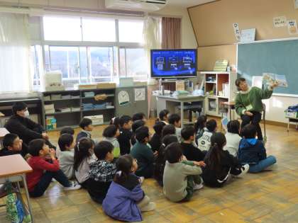 1月20日(月)1年生 読み聞かせ(東クローバー) 公開日 2025/01/20 更新日 2025/01/20 できごと(2024) 1年生も夢中になって聴いていました。とても楽しいお話だったのでしょう。東クローバーの方々がいつも第一っ子が楽しめるように、素敵な本との出会いがあるようにと考えてこの時間をつくってくださっていることに、あらためて感謝申し上げます。
