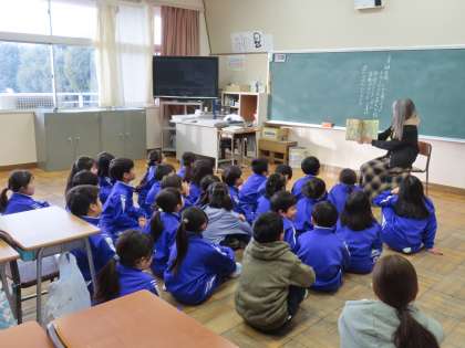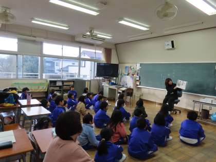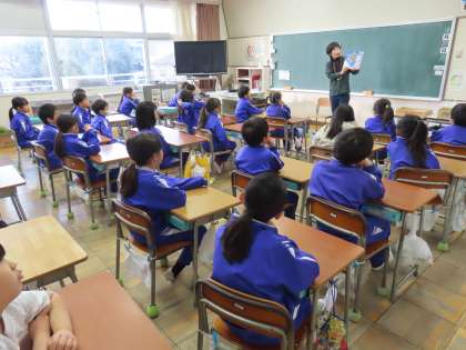 1月20日(月)2年生 読み聞かせ(東クローバー) 公開日 2025/01/20 更新日 2025/01/20 できごと(2024) 2年生も、お話の世界に飛び込んで楽しそうでした。教室のドアを開けるのをやめようかと思うほど夢中で聴いていました。東クローバーの方が絵本のページをめくるたびに、児童が身を乗り出してお話の続きを楽しみにしていました。