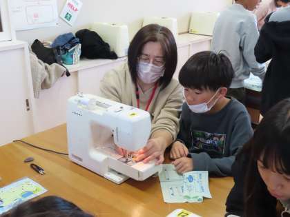 「ミシンで楽しくソーイング」の学習です。「ここでは」ミシン縫いを生かしたエプロン作りを通して、ミシンの安全な使い方を学ぶとともに、ミシン縫い(手作り)のよさに気付いたり、自分の生活に生かしていきたいと思ったりすることができるようになります。いよいよミシンを実際に使う前に、今日はミシンの使い方の練習です。東クローバーの方々にお世話になって、5年生の学習をサポートしていただいています。ありがとうございます。