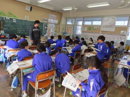 「事件や事故からくらしを守る」では、警察の仕事について学習中です。教室では、警察の方々の仕事について、知っていることや調べたことを挙げていました。多くの児童が様々な場面で私達の地域を守ってくれている姿を見ていたり、テレビで見たりして知っていることを発言していました。するとある児童の発言を機に、教科書に書いてあることや写真から仕事内容を見付け始めました。想像してつなげて考えることもありました。感心しました。こうして3年生ですでに、社会科の学習の学び方が段々と身に付いているなと。