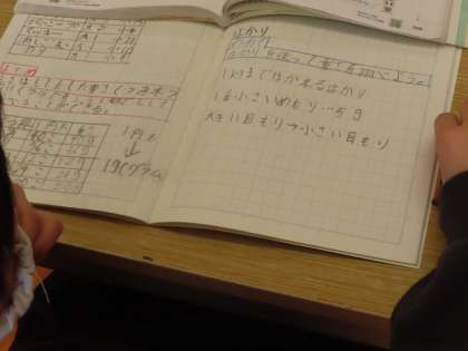 3年生は算数で「重さの単位」を学習しています。ちょうど教室では、「はかり」の読み方を学習していました。先生から、自分のはかってみたい物をはかる学習が待っていることを聞いていたので、今日の学習へのやる気がよく伝わってきました。