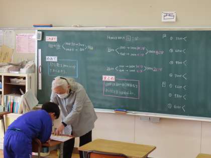 1月23日(木)わかくさ学級 公開日 2025/01/24 更新日 2025/01/24 できごと(2024) (写真中)6年生は算数で「比例と反比例」を学習中でした。今日の課題について考えている過程で、ピン!ときたことが素晴らしく、先生が大変誉めていました。そして、ずっと算数の学習で大切にしているオリジナル「公式ブック」にさっそく書き込んでいました。「中学校の数学の学習でもつかってね!」と声をかけました。