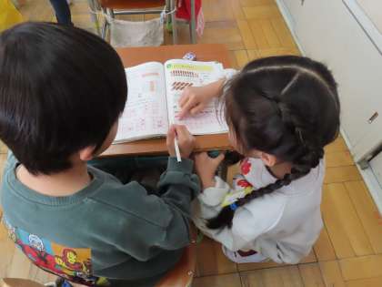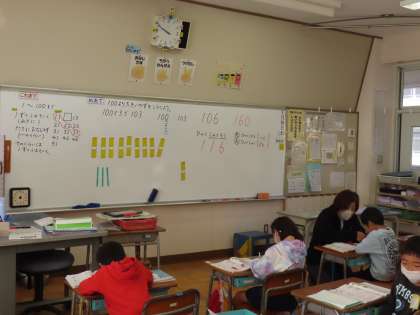 1月24日(金)1年生 算数 公開日 2025/01/24 更新日 2025/01/24 できごと(2024) 「大きなかず」の学習で、問題に取り組みました。すると、ミニ先生をしたい!(教えあいをしたい!)とリクエストの声が飛びました。でも先生が伝える前に児童からこんな声が上がっており、とても感心しました。 「こたえを おしえちゃ だめだよ」 「その子のためにならないからね」 「やりかたを おしえてあげれば いいんだよ」 素晴らしい!