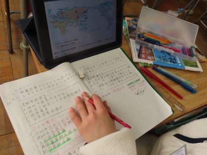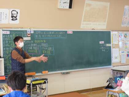 1月27日(月)6年生 社会科 公開日 2025/01/27 更新日 2025/01/27 できごと(2024) 「新しい日本、平和な日本へ」の学習です。今日のめあては「国際社会への復帰により国民の生活はどうなったか」です。今日の学習内容についても、6年生が学ぶ姿勢を見ていると、自分事として歴史的事実(よいこともそうでないことも)しっかり受け止めて考えている様子がよく伝わりました。そこには、その国に暮らしている人々の生活、命があることもしっかりつなげて考えていること、見ていて嬉しく思いました。