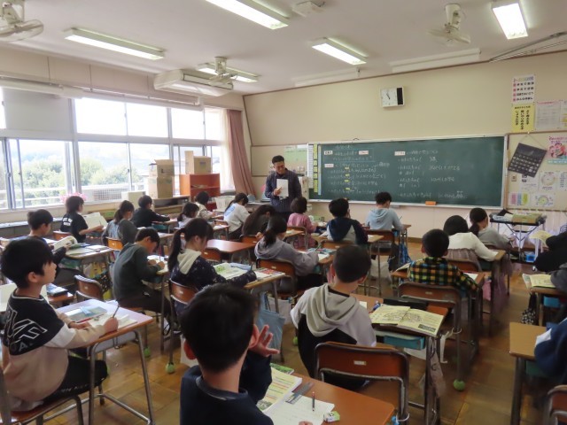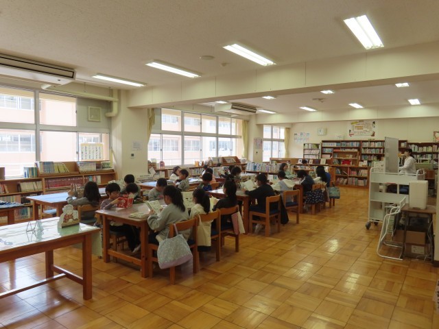 3時間目の4年生の学習は、1組は図工で自画像の制作を、2組は図書の時間で図書室で読書を、3組は社会で4年生の学習のオリオンテーションをしていました。