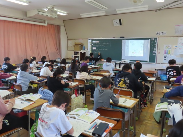 4年生の社会は、群馬県のことについて学習しています。今日は群馬県の様子を白地図にまとめていました。3年生の市の勉強からさらに広い範囲の学習になりますが、ぜひ頑張ってほしいです。