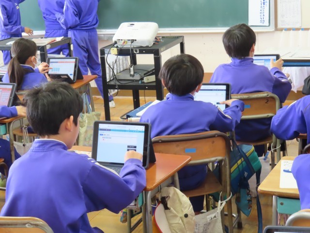 4月18日(金)5年生算数 公開日 2025/04/18 更新日 2025/04/18 できごと(2025) 5年生の算数は「整数と小数」の学習が一通り終わり、今日はテストに向けて、タブレットを活用し補充の学習をしていました。100点を目指して頑張って欲しいと思います。