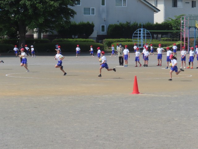 5月1日(木)5年生体育 公開日 2025/05/01 更新日 2025/05/01 できごと(2025) 5年生が校庭で体育をしていました。チームに分かれ、ボールを使ってのリレーをしていました。今日は天気がよく、気温も低かったので、みんな気持ちよく活動していました。