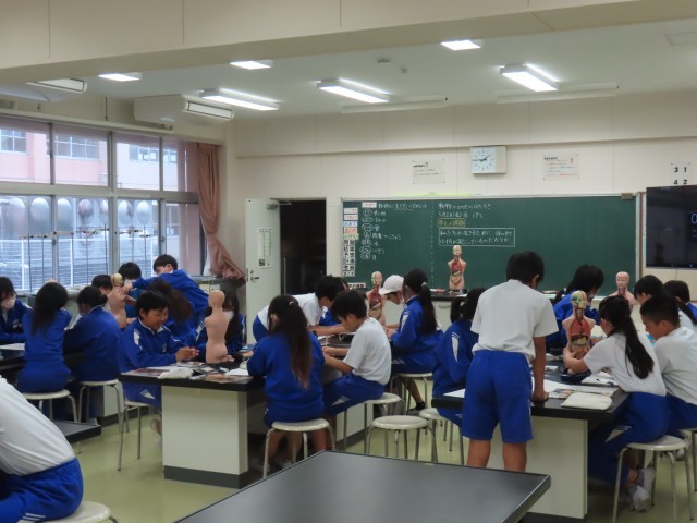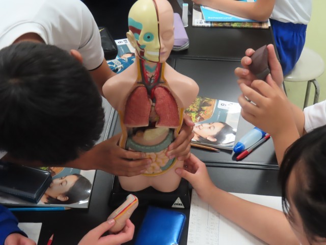 5月2日(金)6年生理科 公開日 2025/05/02 更新日 2025/05/02 できごと(2025) 6年生の理科は動物のからだのはたらきについての学習をしていました。今日は各班で人体模型を見ながら、人間の体の特徴を観察していました。