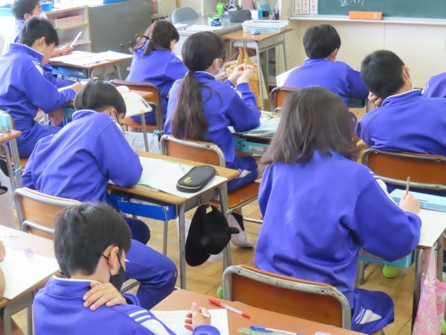5月9日(金)6年生家庭科 公開日 2025/05/09 更新日 2025/05/09 できごと(2025) 6年生の家庭科は調理実習へ向けて、手順や材料の確認をしていました。実習では野菜炒めを作ります。上手に作れるか楽しみです。